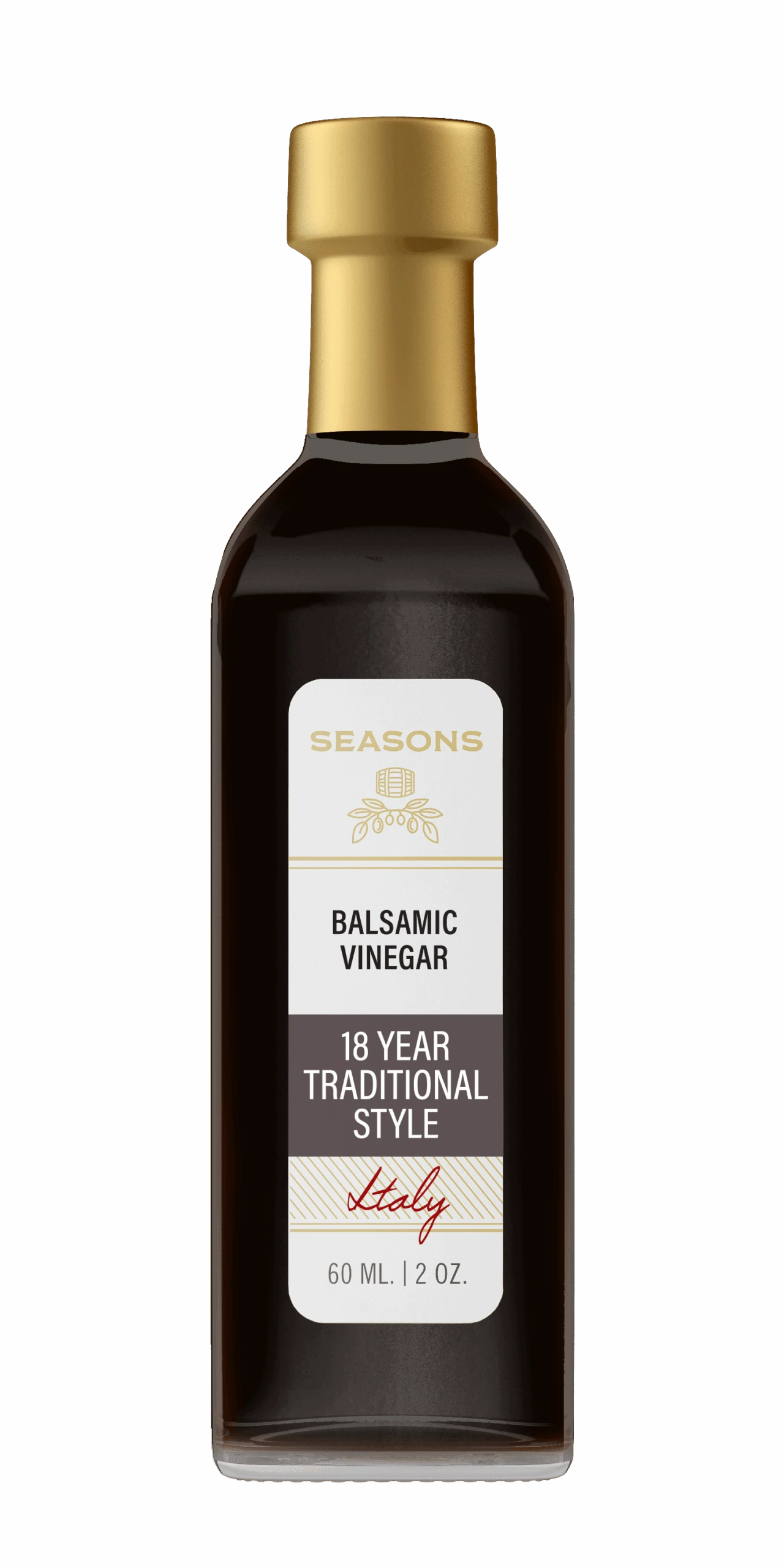 Crafted in Modena from the highest-quality Lambrusco, Sangiovese, and Trebbiano grape must blended with barrel-aged Sangiovese vinegar, our traditional 18-year-style balsamic is complex, smooth, and perfectly balanced, with notes of prune and caramel.