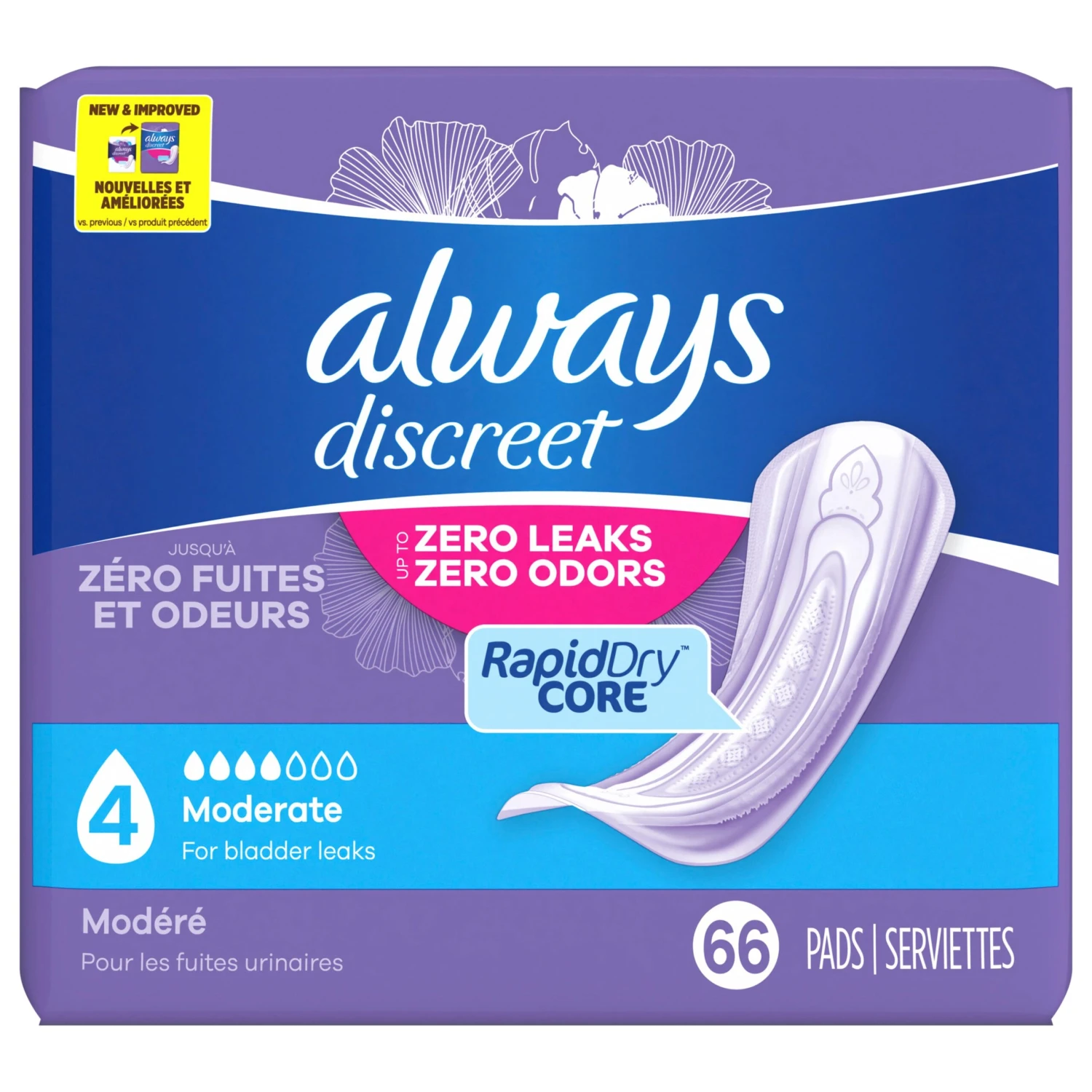 100% protection. RapidDry Core. For bladder leaks. Up to 100% leak-free protection. RapidDry Core. Comfortable fit. Neutralizes odors. Leakguards. Surprisingly this protection to keep you comfortable. Barely there look and feel. www.alwaysdiscreet.com. www.pg.com. how2recycle.info. For more information about this product and its fragrance visit the product detail pages on our website www.alwaysdiscreet.com. Questions? 1-855-206-8286. www.alwaysdiscreet.com. FSA: Call your health care provider for details. Not available in Canada. Also available in different cuts, colors, and sizes of underwear. Made in USA.