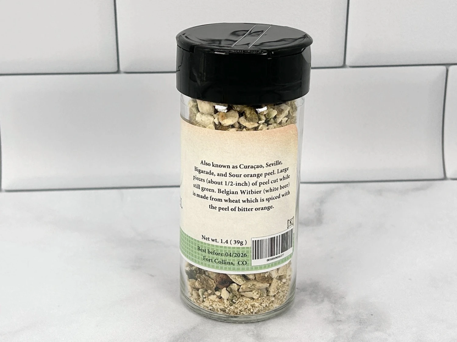 Also known as Curaçao, Seville, Bigarade, and Sour orange peel. Large pieces (about 1/2-inch) of peel cut while still green. Belgian Witbier (white beer) is made from wheat which is spiced with the peel of bitter orange.