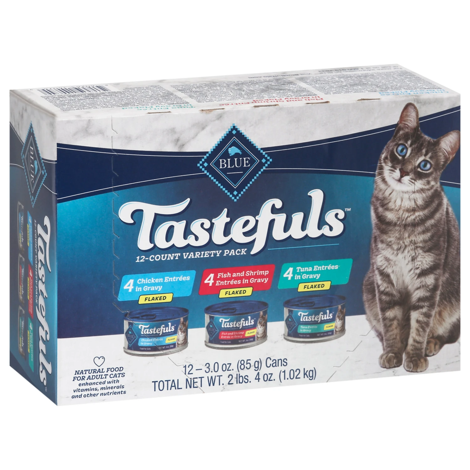 Blue Buffalo Blue Tastefuls Variety Pack Flaked Chicken/Fish And Shrimp/ Tuna Entrees In Gravy Adult Cat Food 12 – 3.0 Oz Cans – 1 Pack