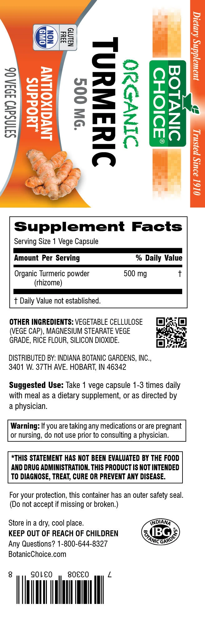 Organic Turmeric powder (rhizome), vegetable cellulose (vege cap), magnesium stearate vege grade, rice flour, silicon dioxide.