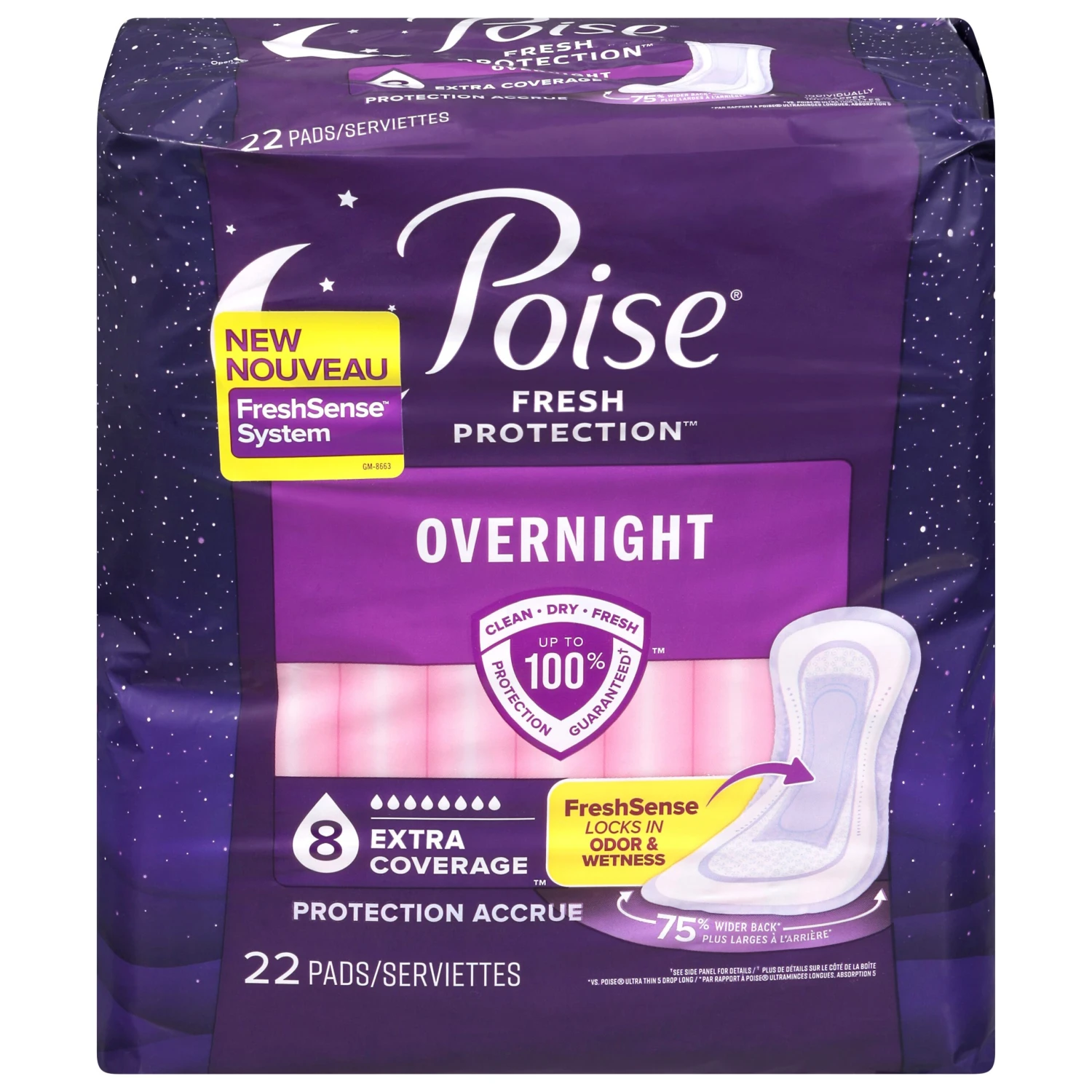 Poise Fresh Protection 8 Extra Coverage Overnight Pads 22 Ea – 22 CT 2 Pack